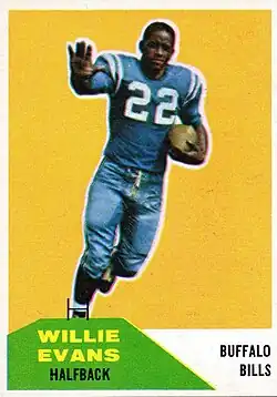 ![]() Evans with the Buffalo Bills on a Fleer card, 1960 | |