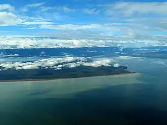 The lake fills the basin of the upper Peace River, backing into the Rocky Mountain Trench which is where the Parsnip and Finlay met at Finlay Forks to form the Peace. The lake includes three reaches, the Peace Reach (formerly the Peace Canyon), and the Parsnip and Finlay Reaches, which are the lowermost basins of those rivers, and covers a total area of 1,761 km2 (680 sq mi),[1] being the largest lake in British Columbia and the seventh largest reservoir (by volume) in the world.