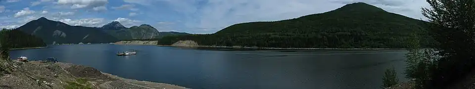 Williston Lake was created in 1968 by the building of the W. A. C. Bennett Dam on the Peace River, which flooded the aboriginal-territorial home of the Tsay Keh Dene First Nation.[4]