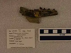 | Batodonoides | B. vanhouteni | Locality SC-303, situated at the 2,110 m level of the formation.[14] | Maxilla and dentaries.[14] | A geolabidid. | ![]() |