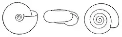 | "Hydrobia" | "H." sp. | Locality SC-69.[9] | "A very small, dextral, high-spired shell with 9 whorls".[9] | A hydrobiid. | ![]() |