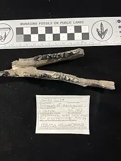- ^ JACKSON, FRANKIE D.; VARRICCHIO, DAVID J.; CORSINI, JOSEPH A. (2013). "Avian Eggs from the Eocene Willwood and Chadron Formations of Wyoming and Nebraska". Journal of Vertebrate Paleontology. 33 (5): 1190–1201. Bibcode:2013JVPal..33.1190J. doi:10.1080/02724634.2013.769445. ISSN 0272-4634. JSTOR 42568634. S2CID 86299573.