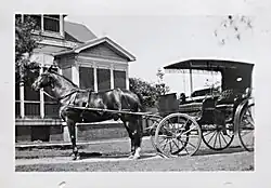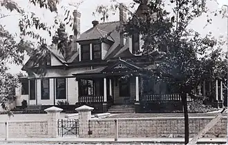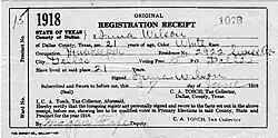 J.B. Wilson (1847–1920) and his younger brother Frederick P. Wilson (1863–1923) emigrated to the US from Canada, and established themselves as successful cattlemen and entrepreneurs of the 19th century.[7][8] In 1894, Frederick married Henrietta M. Frichot (1864–1953). In 1898, according to Atlas record #5113006922, it states "This historic neighborhood is located on land patented in 1838 to Illinois native John Grigsby. Dallas businessman Frederick P. Wilson and his wife Henrietta Frichot Wilson acquired the site in 1898 and built their residence (2922 Swiss Avenue) and six other houses. Owned by the Wilsons for almost eighty years, the houses became the nucleus of the Wilson Block."[9][10] However, the actual inscription on Marker Number 6922 reads: "Swiss native Jacob Nussbaumer, a colonist in the pioneer La Reunion settlement of the Dallas area, purchased this land prior to the Civil War. In 1898 his wife Dorothea and children sold it to her niece Henrietta Frichot Wilson (1864-1953), the daughter of La Reunion settlers."[10] According to Preservation Dallas, "In addition to a lot for their own home, Henrietta Frichot Wilson and her husband Frederick Wilson also acquired an entire city block from Henrietta’s uncle, Jacob Nussbaumer. An early Dallas settler, Nussbaumer came to North Texas as part of the utopian La Reunion colony established just west of Dallas in the 1850s.[11] Frederick and Henrietta had a son, Laurence Frederick (1895–1981), and a daughter, Irma (1897–1918). Irma attended Highland Park Academy, and was among the first Texas women registered to vote in the July 1918 primary election. Primary suffrage did not require a state constitutional amendment; therefore, it could be passed by a simple act of the Texas legislature. State Representative Charles B. Metcalfe introduced the woman suffrage primary bill to allow women the right to vote in primary elections in Texas, and it passed both the House and Senate.[12]