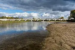 The Wilson Bridge spans the Loire in Tours. It links the northern avenue de la Tranchée via place Choiseul with Rue Nationale via Place Anatole-France to the south. It forms an integral part of the north-south axis that traverses Tours, starting at the top of the avenue de la Tranchée and ending at the base of the pont de l'Alouette. This axis intersects Place Jean-Jaurès, Avenue de Grammont, and crosses the Cher via the pont du Sanitas.[1][2]