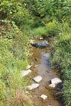 In the past, the flow of Wilson Run was restricted by fallen trees, logs, gravel bars, and rocks. This restriction caused erosion of the banks of the stream. However, its channel was restored by 1980.[6] Sandstone belonging to the Trimmers Rock Formation have been observed near Wilson Run.[7]