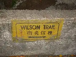 The Wilson Trail (Chinese: 衛奕信徑) is a 78-kilometre (48 mi) long-distance footpath in Hong Kong, 63 km of which runs through Hong Kong country parks.[1] It was named after David Wilson, Baron Wilson of Tillyorn, who was penultimate Governor of Hong Kong from 1987 to 1992. The Wilson Trail was developed by Friends of the Country Park and sponsored by various private organisations. The construction work of the trail began in 1994. The Wilson Trail was first opened on 21 January 1996.