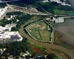 The park includes approximately 36 acres (15 ha) of land along the Macatawa River and the swamp leading into Lake Macatawa.