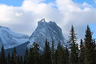 Windtower is a 2,695-metre (8,842-foot) tower-like summit located in the Wind Valley of Kananaskis Country in the Canadian Rockies of Alberta, Canada. Its nearest higher peak is Mount Lougheed, 3.0 km (1.9 mi) to the southeast.[2] Windtower is a conspicuous landmark that can be seen from Highway 1, the Trans-Canada Highway in the Canmore area. Although not of remarkable elevation, the mountain has an imposing, overhanging north face with an appearance similar to peaks in The Bugaboos.