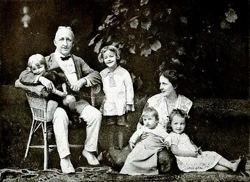 The Bayreuth Festival was seen as a family business, with the leadership to be passed from Richard Wagner to his son Siegfried, but Siegfried, who was secretly bisexual, showed little interest in marriage. It was arranged that Winifred Klindworth, as she was called at the time, aged 17, would meet Siegfried Wagner, aged 45, at the Bayreuth Festival in 1914. A year later, they were married.[3] It was hoped that the marriage would end Siegfried's homosexual encounters and the associated costly scandals and provide an heir to carry on the family business. Following their marriage on 22 September 1915, they had four children in rapid succession.[3] After the death of Siegfried Wagner in 1930, Winifred Wagner took over the Bayreuth Festival, running it until the end of World War II.