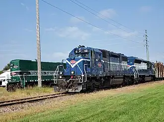 The railroad's locomotive roster is on loan from parent Progressive Rail and includes one EMD SW1500, two EMD GP15-1s, an EMD SD38-2, and two new EMD SD40M-2s. [8] units operating along the system.[9]