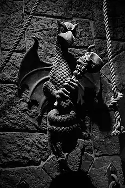 The Prince-in-dungeon plotline described above was not used in the final film, although it was carried out to the drawing and cel stage,[71] and several inspirational sketch pictures of the dungeon scenes were drawn by Ferdinand Hovarth. It is said that Disney "knew that the Queen would have to look scary without being too scary."[19] Some skeletons are briefly featured in the finished film in the other parts of the dungeon,[72] except in Australia's censored original theatrical release version.[73] Similar motifs and scenes were later used in Sleeping Beauty[34][70] and Aladdin. Elements of this sub-plot have also made their way into some other Disney's Snow White fiction and visitor attractions.