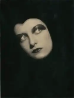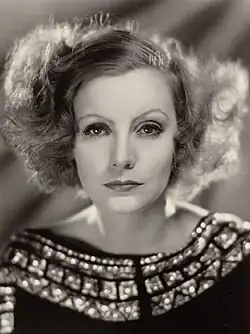 The Queen was made to look like both a 1930s femme fatale and a medieval, magical villainess.[22] Her appearance was inspired by Queen Ayesha ("She who must be obeyed"), an "ageless ice goddess"[23] from the film She, played by Helen Gahagan.[24][25] The Queen, who originally had the name Grimhilde[13] (but would ultimately remain nameless in the film[26]), was also modeled in part on Kriemhild in the film Die Nibelungen.[27] Her face may have been inspired by Joan Crawford[28][7] and other actresses such as Gale Sondergaard.[8] Also noted was her resemblance to two Hollywood stars from Europe, Greta Garbo and Marlene Dietrich.[8][29] Her costume and figure may have been based on a column statue at the Naumburg Cathedral depicting Uta von Ballenstedt who was widely regarded as the most beautiful woman of Medieval Germany.[30][31][7] Both the Queen and Snow White were refined by Grim Natwick and Norm Ferguson, who would often override Walt Disney's instructions.[32] As in the case of other characters for the film, the Queen's appearance had to be approved by Albert Hurter before being finalised.[17] One pre-final version of the queen had her wear a looser hood and a different crown and the edge of her cape was fur trimmed, as it can be seen in Gustaf Tenggren's pictures.[33][34]