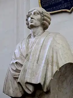 Wojciech Rojowski (died 1778) was a Polish sculptor and woodcarver. His date of birth is not known. Information on the life Rojowski is scarce. He probably had a workshop in Kraków. He performed mainly sculptures and decorating the interior of churches in Kraków. He worked in stucco and wood in the Rococo style. His works are characterized by their richness of decoration. In 1750, he completed the stucco decoration of the altar of St. John of Nepomuk in the Pauline Church Na Skałce (On the Rock). From 1758 to 1766, he worked on the interior decoration of the Bernardine Church, Lviv. In addition, he participated in the work of such the Carmelite church, a church cloister in Bielany, and the Church of the Holy Sepulchre in Miechów. Rojowski also decorated the chapel of Bishop Andrzej Stanisław Załuski in the Wawel Cathedral, including a carved statue of the bishop. He was the creator of the Copernicus monument (1766), commissioned for the Town Hall of Toruń (predecessor to the later Nicolaus Copernicus Monument in Toruń).