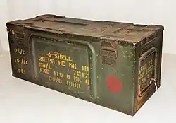 As an enlisted soldier with his own paybook, rank, and serial number, he lived with the other men in tents or in a special wooden crate, which was transported by truck. During the Battle of Monte Cassino, Wojtek helped his unit convey ammunition by carrying 100-pound (45 kg) crates of 25-pound artillery shells, never dropping any of them. While this story generated debate over its accuracy, at least one account exists of a British soldier recalling seeing a bear carrying crates of ammunition.[10] The bear mimicked the soldiers: when he saw the men lifting crates, he copied them. Wojtek carried boxes that normally required four men, which he would stack onto a truck or other ammunition boxes.[11] After the Polish victory, Wojtek became a celebrity among visiting Allied generals and statesmen. This service also earned him promotion to the rank of corporal. In recognition of Wojtek's popularity, a depiction of a bear carrying an artillery shell was adopted as the official emblem of the 22nd Company.[8]