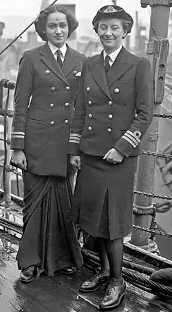 ![]() Second Officer Kalyani Sen (left) and Chief Officer Margaret Isobel Cooper (right) at Rosyth June 1945 | |