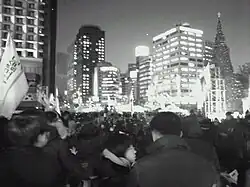 Women in Asia have been organizing to address workplace issues, such as unequal pay and workplace violence as early as the 1880s.[1] The formation of women's labor unions in South Korea began in the late 1970s with the Minjung movement, as it is based on the mobilization of young female factory workers and martial law suspended labor rights.[2] Women in South Korea are typically irregular workers, who are not protected by labor laws, make up to 35% less in wages than men, and are less likely to be a union member.[3]