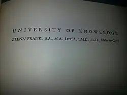 The Wonder Books are a series of books produced in the United States in the 1930s and 1940s. It was published by the University of Knowledge Incorporated, editor in chief being Glenn Frank.[1][2] It is not to be confused with the children's book imprint of Grosset and Dunlap.