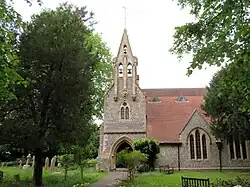 In ecclesiastical terms, a church dedicated to St John the Evangelist was built in 1873, initially as a chapel of ease to St Andrew's Church, Sonning.[18] St John's was elevated to formally become a parish church in 1881 when a separate ecclesiastical parish of Woodley was created.[19]