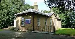 On Green Hill, east of the Repository, an observatory was built in 1838. This was the first headquarters of the Royal Artillery Institution (a scientific educational club for officers), which had been founded that year by Lieutenants John Lefroy and Frederick Eardley-Wilmot. From 1839 it also served as the home base for Edward Sabine's global survey of terrestrial magnetism (with which Lefroy and Eardley-Wilmot were closely involved); it was known for a time as the Magnetic Office, until the Magnetic Survey moved to Kew Observatory in 1871.[10] The observatory was extended in 1853, with the addition of a domed equatorial room. The following year, the RA Institution moved into new larger premises within the main Barracks complex; but it continued to use the observatory for astronomy until 1926. While the equatorial room was demolished soon afterwards, the original small transit room survives, alongside the pedimented annexe which originally housed the Institution's library and reading room. In the 21st century it accommodated the Royal Military Police.[5]