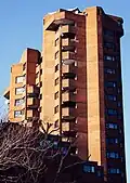 This was followed, in early 70's, by the red brick towers of the World's End estate which swept away many Victorian terraced houses.[6] The estate was designed by Jim Cadbury-Brown and Eric Lyons,[2] and is now known for its brutalist architecture.[7]