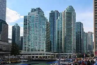 - ^ "New neighbor on the waterfront, Against a backdrop of downtown Toronto's skyline, Gino Dallaire, left, and Daniel Smith install metal window frames in(...)". digitalarchive.tpl.ca. Retrieved 2025-06-27.