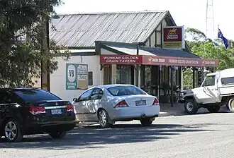 Wunkar is a small town in the Murray Mallee region of South Australia. Wunkar was originally a station on the Moorook railway line.[2] The town was surveyed in 1926 after the railway station name was approved in 1925.[3] The railway closed in 1971. Wunkar now lies adjacent to the Stott Highway approximately 27 km west of Loxton. There are bulk grain silos at the former railway station. The school opened in 1925 and closed in 1973.