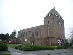 Wythenshawe Bus Garage was built of reinforced concrete during 1939–42, designed by the Manchester City Architect, G. Noel Hill.[14] It was taken over by the Ministry of Aircraft Production and A. V. Roe & Co. Ltd. used it for building Lancaster aircraft during the Second World War. The building was Grade II* listed in 2001.[15]