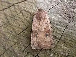 Xestia baja, the dotted clay, is a species of moth of the family Noctuidae. It is found in Europe, Turkey, northern Iran, Transcaucasia, the Caucasus, central Asia, Siberia, Mongolia, Tibet, China, Korea and Japan.[2]