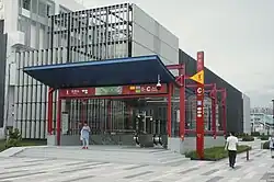 During COVID-19 pandemic control rules from 29 May to 24 June 2021, the station's services had been largely restricted, as from 29 May the station only allowed exiting,[5] and from 7 June all entrances/exits effectively closed, which meant that passengers couldn't embark or disembark at this station,[6] and while the trains on both lines can still stop here, passengers can only transfer between both lines within the fare zone. All entrances have been reopened in the afternoon of 24 June.[7]