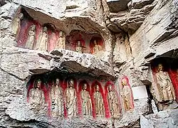 In the Thousand Buddha Cliff (千佛崖) that is opposite to the temple, there are many stone statues made by artisans in the Sui and Tang dynasties. The over 200 stone statues are carved with integrate structural and exquisite techniques.[2]