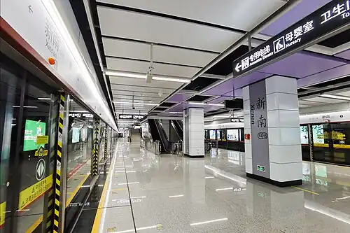Xinnan station (Chinese: 新南站; pinyin: Xīnnán Zhàn; Jyutping: san1naam4 zaam6), is a station of Line 14 of the Guangzhou Metro. It started operations on 28 December 2017.[1]