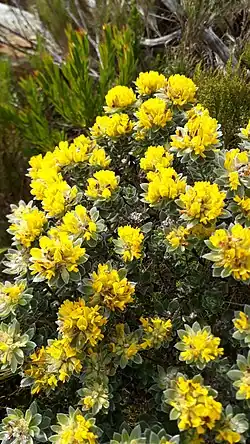 Xiphotheca is a genus of flowering plants in the legume family, Fabaceae. It includes 10 species of shrubs endemic to the Cape Provinces of South Africa. They grow in fynbos (Mediterranean-climate shrubland), generally at medium or low elevations, and often species have highly localised ranges.[3] The genus belongs to the subfamily Faboideae. The name of the genus is a compound of Ancient Greek ξίφος (ksíphos), which means "sword", and θήκη (thēkē) which can mean "box" or "sheath"—a reference to the shape of the legume pods.[1] Members of this genus can be distinguished by: