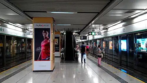 Xixiang station (simplified Chinese: 西乡站; traditional Chinese: 西鄉站; pinyin: Xīxīang Zhàn; Jyutping: Sai1 Hoeng1 Zaam6) is a station on Line 1 of the Shenzhen Metro in Shenzhen, Guangdong Province, China. The station opened on 15 June 2011.