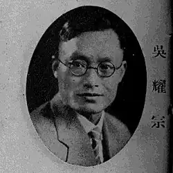 Y. T. Wu or Wu Yao-tsung (simplified Chinese: 吴耀宗; traditional Chinese: 吳耀宗; pinyin: Wú Yaòzōng; 4 November 1893 – 17 September 1979) was a Protestant leader in China who played a key role in the establishment of the Three-Self Patriotic Movement.[1] Wu also played an important role in the theology of K. H. Ting.[2]