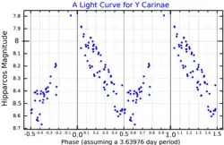 - ^ Evans, Nancy R. (1992). "The Luminosity of the Double-Mode Cepheid y Carinae". The Astrophysical Journal. 385: 680. Bibcode:1992ApJ...385..680E. doi:10.1086/170974.