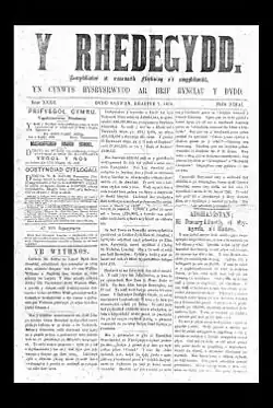 Y Rhedegydd (established in 1878) was a weekly Welsh language newspaper distributed around Blaenau Ffestiniog and districts of Caernarfonshire and Meirionethshire. The newspaper mainly addressed local news and information.[1]