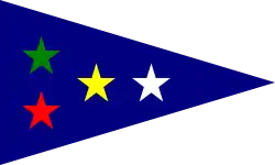 The burgee of the club consists of a blue triangle with four stars inside: green, red, yellow, white.