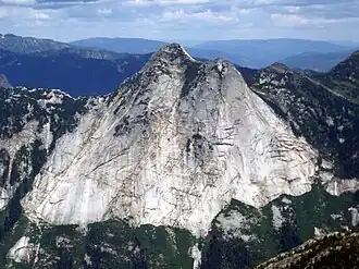 Yak Peak is a granite summit located adjacent the Coquihalla Highway in British Columbia north of Hope.[2] The mountain lies less than one km from a highway rest area, and is easily visible from a long stretch of the highway just south of the summit. It is known for some fine granite rock climbing routes, notably Yak Crack. Other mountains in the same group, usually known as the Anderson River Group or as the Coquihalla Range, are named after other similar animals, such as Thar Peak and Guanaco Peak.