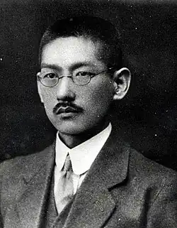 Yamakawa joined the Japan Socialist Party in 1906 and, under the influence of Kōtoku Shūsui, became a leading advocate of anarcho-syndicalism.[4] Following another prison term after the Red Flag Incident of 1908 and a period of withdrawal, he returned to activism in 1916.[5] The Russian Revolution led him to embrace Marxism–Leninism, and in 1922 he helped establish the Japanese Communist Party.[6] He developed the doctrine of "Yamakawaism," which called for a mass-based, legal proletarian party rather than a small, secretive vanguard, leading to the dissolution of the first JCP in 1924.[7] In 1927, he led the Rōnō-ha in a definitive split from the JCP, initiating the highly influential "Japanese capitalism debate".[8] Yamakawa and his faction argued that Japan was an advanced capitalist country requiring a direct, one-stage socialist revolution, a position that placed them in direct opposition to both the JCP and the Comintern.