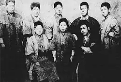Yamakawa began his studies at Dōshisha's preparatory school in 1895.[26] Though initially critical of Christianity as a foreign religion, he was soon attracted to the school's strict moral atmosphere and the self-discipline and kindness of its Christian teachers.[27] He felt a sense of belonging for the first time in his life, finding the small, family-like society of the school appealing.[27] He soon became involved in student life, joining a group of seven students who went sculling on weekends and a rebellious group called the Dōkōkai (闘呼会, Fight Together Society), which led student demonstrations against the school administration.[28]