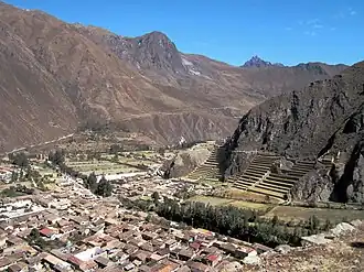 ![]() Yana Urqu (center-left) as seen from Ollantaytambo | |
