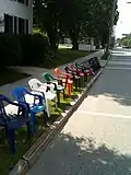 The Yarmouth Clam Festival is an annual three-day event which takes place in Yarmouth, Maine, starting on the third Friday every July. Established in 1965 as a successor to the town's late-August Old Home Week (itself started in 1911), it is hosted by the Yarmouth Chamber of Commerce, with the aim of raising money for approximately thirty local non-profit organizations, churches, and school groups. The event draws visitors from all over the country.[1] As a result, Yarmouth, a town with a population of around 9,000, accommodates approximately 80,000 people over the course of the weekend.[2] A section of the former population have made it a tradition to stake out their Friday-evening parade viewpoint with a chair several weeks before the event — even as early as May,[3] though this may be in an ironic fashion.