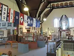 Main Gallery with the Cape Forchu lens, ship portraits and models and Yarmouth shipping house flags