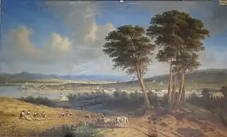 In 1839, he began auditing classes at the Imperial Academy of Arts; notably the landscape painting workshops of Maxim Vorobiev.[1] After completing only one year, he had already received a commission to paint views of the Alexander Palace. From 1841 to 1842, he participated in a scientific expedition to the Altai and Sayan mountains led by the naturalist, Pyotr Chikhachyov. The paintings he made won a silver medal at the academy in 1843.