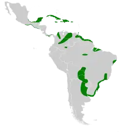 - L. f. flaviventer, Panama east through northern and central Colombia and Venezuela to the Guianas and south through parts of Brazil, eastern Bolivia, Paraguay, and Uruguay into northeastern Argentina; also Trinidad and Tobago[15]