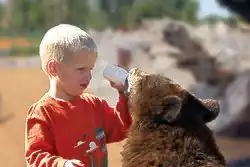 Three times during each day the park offers children and adults the chance to bottle feed bear cubs and pet them. The feeding experience is part of a complete 'behind the scenes' visit with a professional animal keeper.[16]