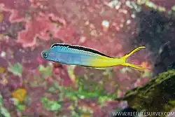 Plagiotremus laudandus, the bicolour fangblenny, false harptail-blenny, poison-fang blenny mimic, yellow-tailed blenny or the yellowtail fangblenny mimic, is a species of combtooth blenny found in coral reefs in the western Pacific ocean. This species reaches a length of 8 centimetres (3.1 in) TL.[2] This species is a Batesian mimic of Meiacanthus atrodorsalis.[3]