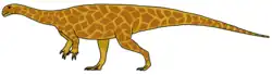 Yimenosaurus (meaning "Yiman reptile") is an extinct genus of plateosaurid sauropodomorph dinosaur that lived in China in the Early Jurassic. The genus was first named in 1990 by Ziqi Bai, Jie Yang and Guohui Wang, along with its type and only species, Yimenosaurus youngi. The species name honours renowned Chinese paleontologist Yang Zhongjian, the father of Chinese paleontology, known as C.C. Young in English. Known material includes the holotype, an almost complete skull and mandible, as well as incomplete cervical and dorsal vertebrae, a mostly complete sacrum, an ilium, ischia, partial ribs and complete femur, and a paratype, a well-preserved postcrania with a fragmentary skull. In 2010 Paul estimated its length at 9 metres (30 ft) and its weight at 2 tonnes (2.2 short tons).[1]