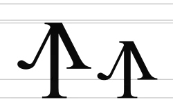 As few fonts contain the appropriate glyphs, the Upwards Arrow (↑) is sometimes substituted. The notable fonts that have included this glyph are FreeSerif and Segoe UI (since Windows 8).