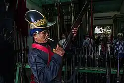 The Yogyakarta Kraton Guards[a] are the contingents of soldiers, known as the Bregada, tasked with the guarding of Kraton Ngayogyakarta Hadiningrat, the official residence of the Sultans of Yogyakarta.[1] They serve ceremonial and security functions.[1] By tradition, the reigning Sultan of Yogyakarta serves as Colonel-in-chief of the Guards.[1]